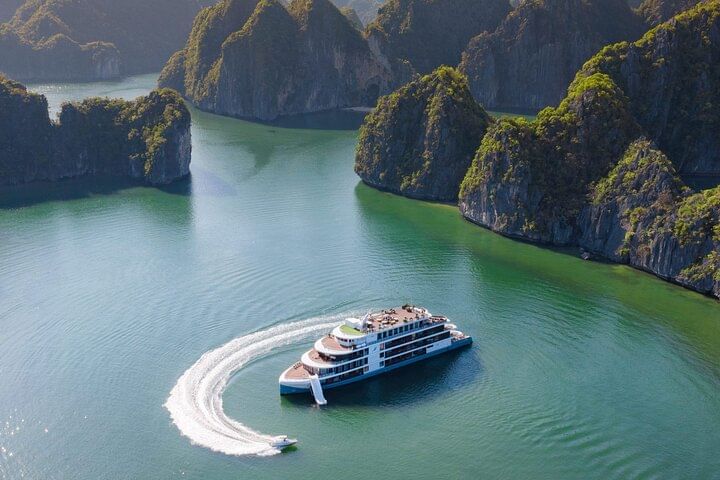 Experience the ultimate luxury on the Capella 6-star Cruise, a 3-day journey from Hanoi that unveils the stunning landscapes of Halong Bay and Lan Ha Bay. This premium cruise features elegantly designed suites, exceptional service, and an immersive itinerary that includes kayaking through emerald waters, exploring hidden caves, and visiting authentic floating fishing villages. Savor exquisite Vietnamese gourmet cuisine as you relax on deck, surrounded by UNESCO-listed limestone karsts and pristine beaches. Perfect for discerning travelers seeking a seamless blend of adventure, culture, and five-star comfort in one of Vietnam’s most breathtaking destinations.