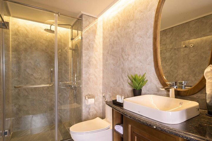With this enthralling excursion, you will have an unrivaled adventure on the biggest boat in Halong Bay. Explore the delights of Surprise Cave, the charm of Cua Van fishing village, and the enchantment of Luon Cave. Exciting activities like as kayaking, squid fishing, and watching stunning sunsets are available. As you embark on the ultimate voyage of a lifetime, find serenity in the large accommodations.