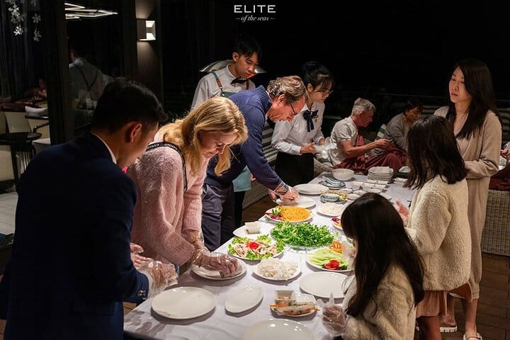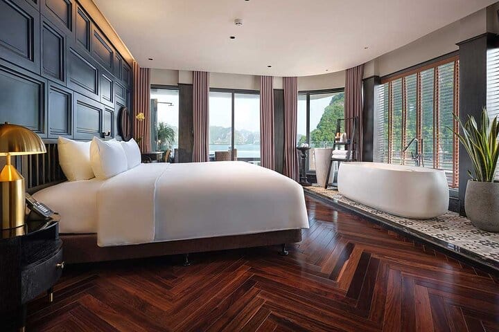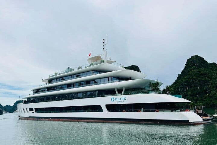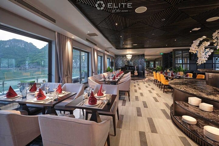 Elite of the Seas is designed in a contemporary, luxurious, and refined style, offering an exceptional 5-star cruise experience in Halong Bay and Lan Ha Bay. Featuring elegant sea-view cabins, an infinity pool, sun terrace, and bar, the cruise provides air-conditioned rooms equipped with a desk, kettle, fridge, safety deposit box, flat-screen TV, and a private bathroom with bathtub and separate shower. Cruising through the breathtaking landscapes of Halong Bay and Lan Ha Bay, guests can enjoy activities such as swimming, kayaking, and local rowing boats, all delivered with warm and professional service. This 2-day 1-night luxury cruise is the perfect way to experience the natural wonders and true Vietnamese hospitality.