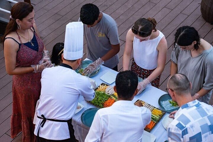 Beyond the reach of any crowd, this 3-day 2-night cruise offers an unforgettable journey through pristine natural landscapes and peaceful local villages. Guests can start conveniently with pick-up from Hanoi Old Quarter or board directly at Tuan Chau Port. Highlights include sunrise Tai Chi sessions, authentic Vietnamese cooking classes, lively sunset parties, squid fishing, and luxurious private cabins designed for ultimate relaxation. Whether standing before Van Boi Beach, exploring Dark & Bright Caves, or visiting Viet Hai Village, this is the perfect voyage you’ve been searching for.