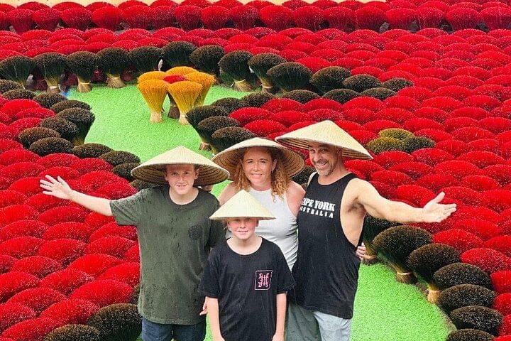 Step away from the hustle of Hanoi and uncover Vietnam’s rich cultural heritage with a visit to two traditional craft villages. In Chuong Village, learn about the centuries-old craft of conical hat making, a skill lovingly passed down through generations. Continue to Quang Phu Cau, a vibrant village where thousands of incense sticks are dyed and arranged each day, transforming the streets into a kaleidoscope of color and fragrance. Meet dedicated artisans, watch their intricate techniques, and gain a genuine glimpse into rural life. With hands-on guidance, paint and assemble your own conical hat — a meaningful keepsake and a lasting reminder of Vietnam’s timeless artistry.