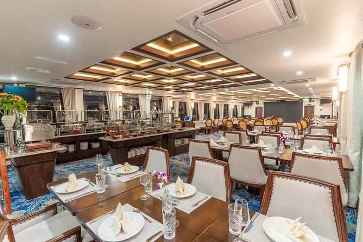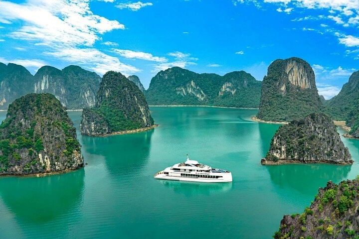 Embark on the Halong Symphony Cruise from Hanoi for a luxurious day exploring Halong Bay’s breathtaking landscapes. Sail past emerald waters and limestone islands while enjoying a delicious Vietnamese buffet lunch onboard. Explore the magnificent Sung Sot Cave, kayak or bamboo boat through serene Luon Cave, and relax on a pristine beach. Experience the perfect blend of adventure and luxury on this premium Halong Bay cruise.