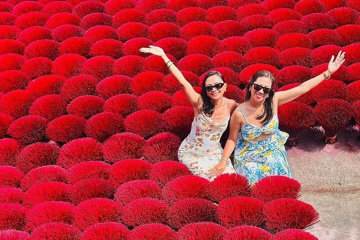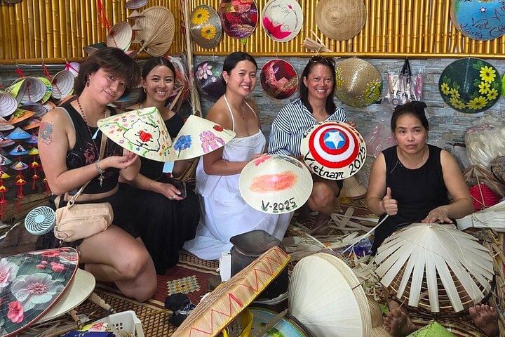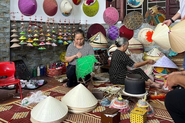 Escape the bustle of Hanoi and immerse yourself in Vietnam’s rich cultural traditions on this serene full-day craft village tour. Travel to Chuong, Ha Thai, and Quang Phu Cau — three iconic villages where ancient crafts have been lovingly preserved for generations. Discover the art of conical hat making, witness the delicate process of lacquerware painting, and explore the vibrant world of incense crafting. Meet local artisans, learn their time-honored techniques, and enjoy hands-on experiences such as creating your own conical hat and decorating lacquerware. Savor a home-cooked Vietnamese lunch in a welcoming local home, with vegetarian and non-vegetarian options available. Conclude your journey with a one-of-a-kind keepsake — a conical hat made by you — a beautiful reminder of Vietnam’s enduring craftsmanship and cultural soul.