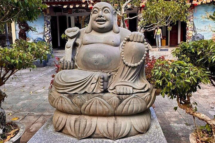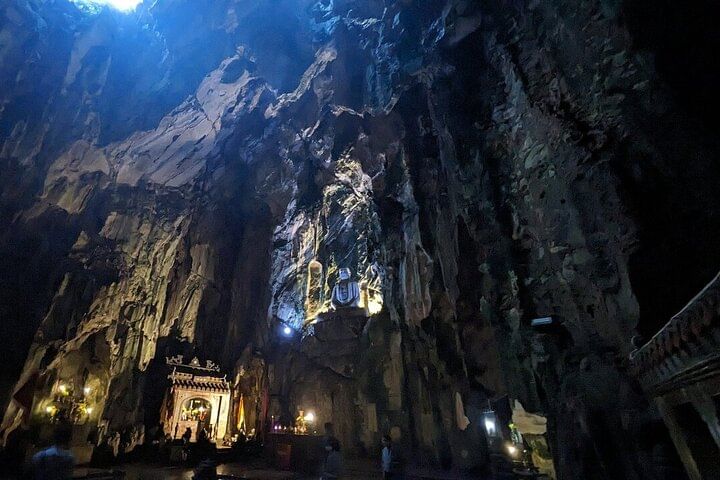 Embark on a luxury small-group tour blending the best of Da Nang and Hoi An, starting with a convenient hotel pickup and transfer to Da Nang. Begin your adventure at Monkey Mountain, where the majestic Lady Buddha statue and peaceful bonsai garden offer a serene setting for a leisurely stroll. Continue to the iconic Marble Mountains, famed for exquisite stone sculptures and 19th-century pagodas. Take an optional elevator ride to the summit to explore the mystical Huyền Không and Tàng Chơn Caves, then delve into the awe-inspiring Âm Phủ Cave to admire stunning natural formations and discover Buddhist philosophies. Afterward, enjoy a delicious lunch featuring authentic Vietnamese cuisine before being comfortably transferred back to your hotel in Hoi An or Da Nang. Experience a day filled with cultural richness and natural beauty on this unforgettable luxury tour.