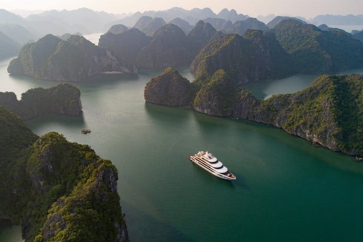 Discover a refined and sustainable way to explore Ha Long and Lan Ha Bay aboard Scarlet Pearl Cruise. With only 23 elegant cabins, each featuring a private sea-view balcony, the cruise offers an intimate and luxurious escape. Over 2 days and 1 night, immerse yourself in kayaking, swimming, cooking classes, and authentic cultural moments, while enjoying full-board gourmet dining. It’s the perfect blend of comfort, exclusivity, and breathtaking natural beauty.
